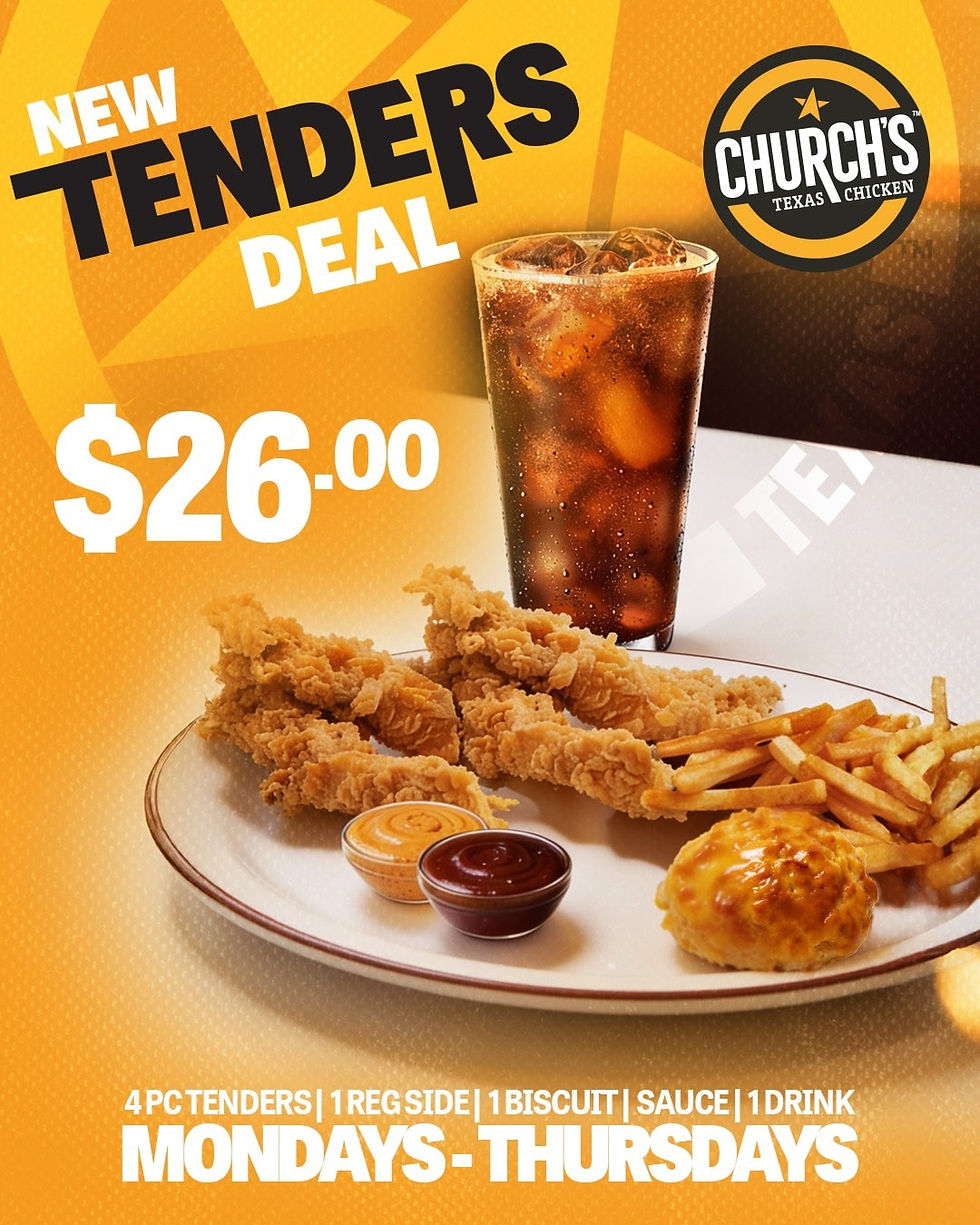 The New Tenders Deal is available Mondays to Thursdays at Church’s Texas Chicken locations throughout St. Lucia. If you’re looking for a weekday win that’s tasty, filling, and budget-friendly, this is a deal worth trying.